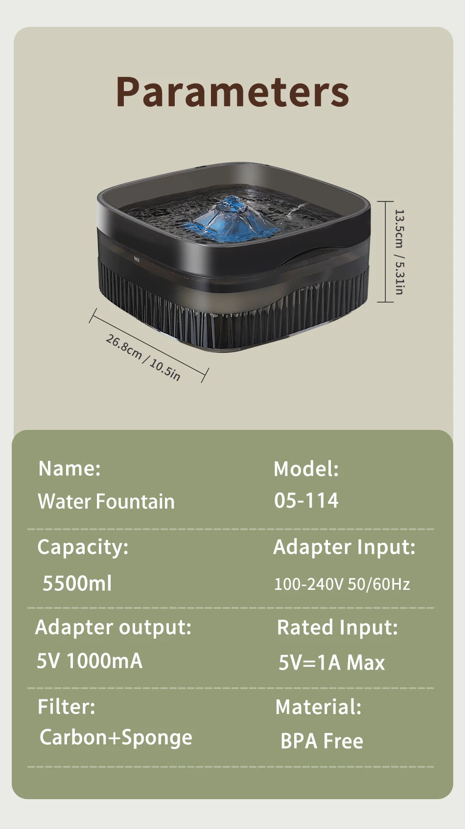 5.5L & 9L Large-Capacity Pet Water Fountain