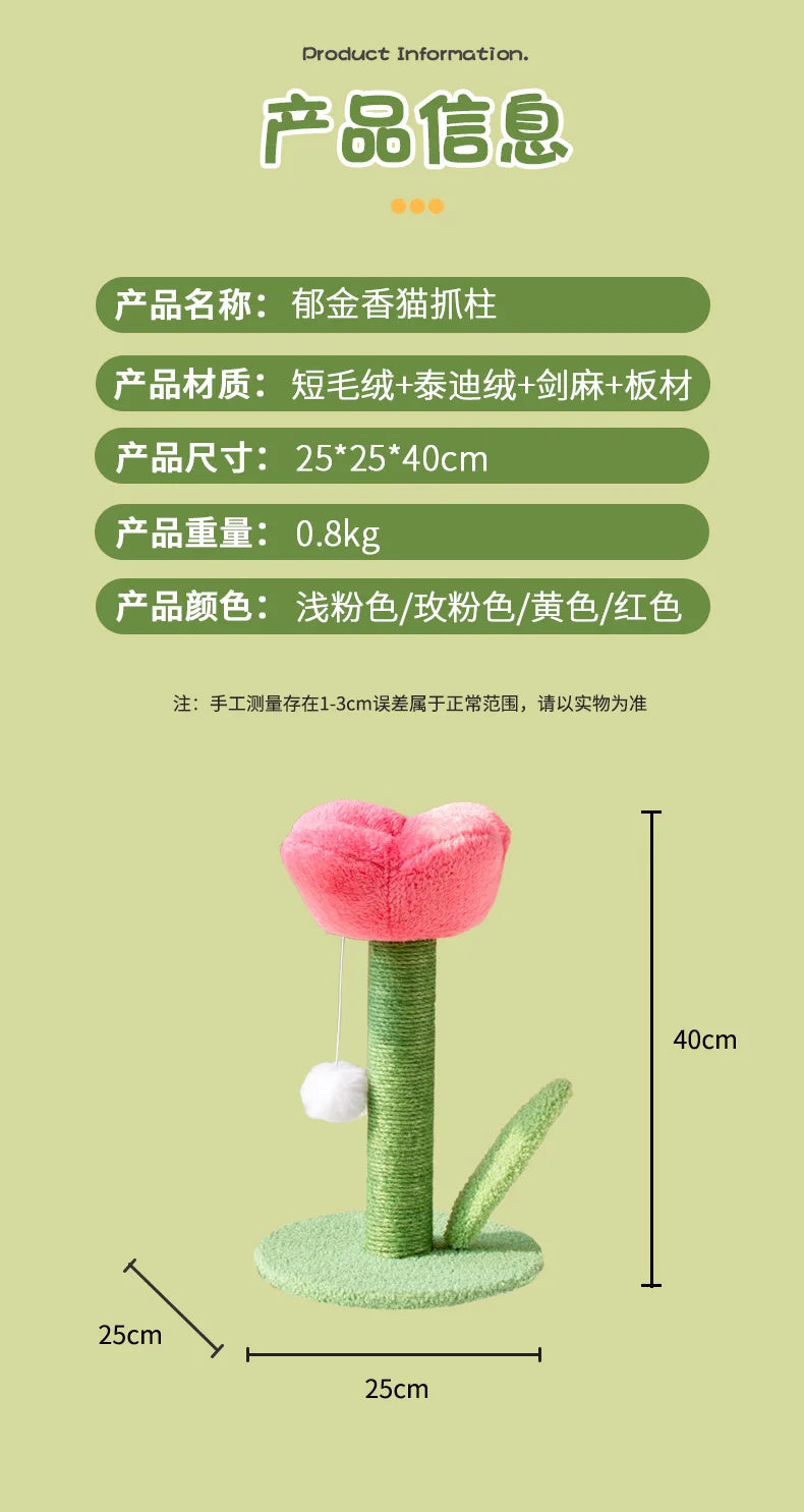 Bring a touch of elegance to your home with this charming Tulip Shaped Cat Tower. Designed as a beautiful flower, it doubles as a scratching post and play station, giving your kitty the perfect place to stretch, claw, and lounge. The natural sisal column promotes healthy scratching while the soft plush petals provide a cozy perch for naps and play.